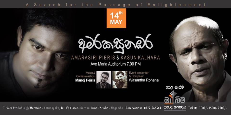 informations ” අමරක සුනඹර ” By fgamage - 2016 April 28 0 159 FacebookWhatsApp මාබිම සහෘද සංසදය විසින් සංවිධානය කරන මියුරු ගී රස සැන්දෑව ‘ අමරක සුනඹර , නමින් මැයි 14 වනදා මීගමුව ආවේ මරියා ගෘහස්ත ශ්රවනාගාරයේදී පැවත්විමට නියමිතයි.