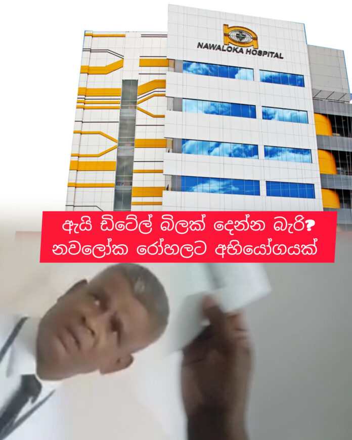 නොවැම්බර් 11 වනදා සිය මවගේ දතක් ගැලවීම සඳහා මීගමුව නවලෝක රෝහලට ගිය පුද්ගලයෙකුට මුහුණ දිමට සිදුවූ අසාධාරණයක් සම්බන්ධයෙන් ඔහු විසින් පෞද්ගලික සොෟඛ්ය සේවා නියාමන සභාවට (rivate Health Service Regulatory Council ) පැමිණිල්ලක් සිදුකර ඇත.