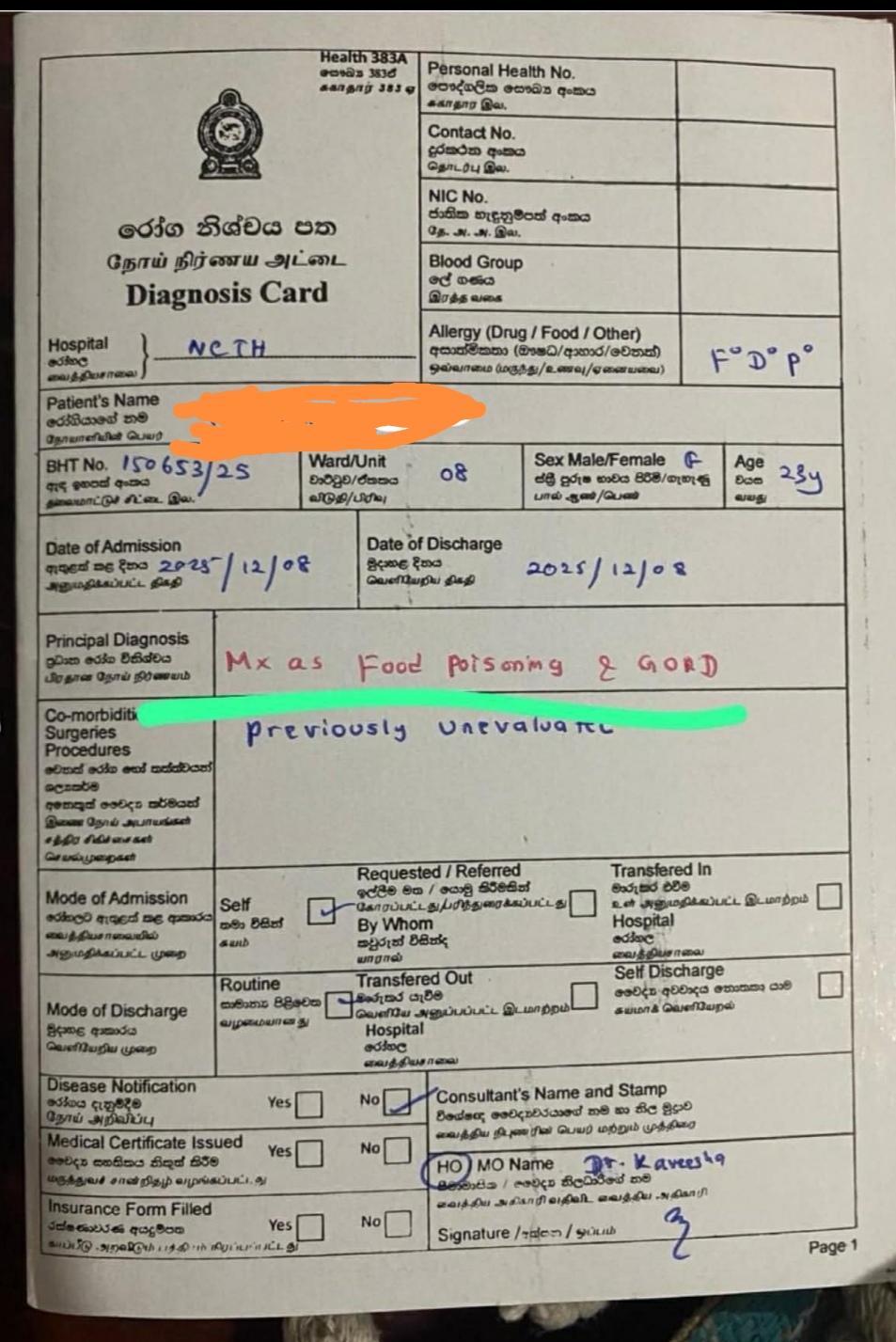 විවිධ ප්‍රදේශ වලින් පැමිණි මේ පිරිස් පුද්ගලික රෝහල් වලින් මෙන්ම රජයේ රෝහල් වලින්ද ප්‍රතිකාර ලබාගෙන තිබුන අතර වෛද්‍ය නිගමනය වි තිබුනේ රෝගි තත්වයන්ට හේතුව ආහාර විෂවිම් බවය.ඇතැම් රෝගින්ගේ ඇද ඉහපත් වාර්තාවලද මේ බව සටහන්ව තිබුණි.Screenshot 20251230 100539