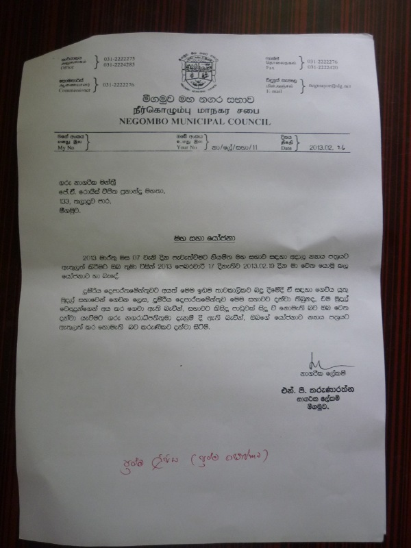 මේ එක් අවස්ථාවක් ඔබගේ අවධානයට ගෙන එනු ලබන්නේ මීගමුව තුල වර්ධනය වෙමින් එන පරිපාලනයමය ආරාජිකත්වය නැවත මහජන අවධානයට යොමු කරවනු පිණිසය.ක