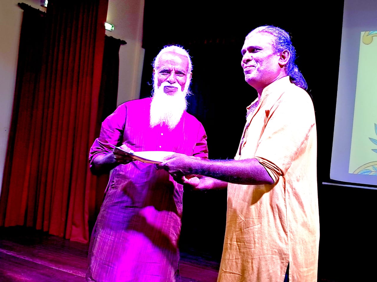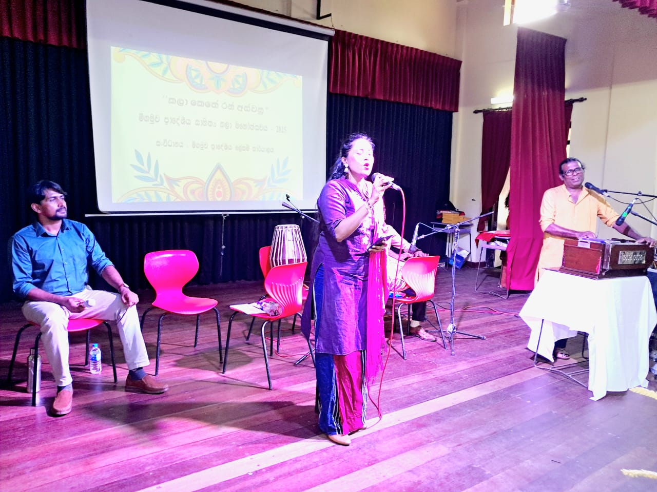 ඔහුගේ දේශනයට සමගාමීව පැවති ගීත ගායනාවන් සඳහා ගායනයෙන් සහය වූයේ පේරාදෙණිය විශ්ව විද්යාලයේ ලලිත කලා විෂය පිළිබඳව කථිකාචාර්යවරයකු සහ වර්තමානයේ මනමේ සහ සිංහබාහු යන ප්රකට වේදිකා නාට්යවල ප්රධාන චරිත නිරූපණය කරන වේදිකා නාට්යය නළුවෙකු වන ජනක මුණසිංහ මහතා සහ සෞන්දර්ය විශ්ව විද්යාලයේ උපාධිධාරිනියක් මෙන්ම ජනප්රිය වේදිකා නාට්ය නිළියක් සහ ගායිකාවක් වන අමන්දා නාරංකොටුව මහත්මියයි. ඒ අනුව මෙම දේශනයට ද සමගාමීව මෙරට කෝලම්, නාඩගම්, සහ නූර්ති නාට්ය වල ගීත කිහිපයක් සජීවීව රස විඳ ගැනීමේ අවස්ථාවද උදා විය. තවද මෙහිදී ගැයුණු කෝලම් සහ නාඩගම්,ගීත සඳහා මෙරට ප්රවීණ මද්දල් වාදන ශිල්පියෙකු වූ නන්දන ගුණසිංහ මහතා විසින් මද්දල් වාදනය සැපයූ අතර එම අවස්ථාවන් මෙම සාහිත්යය කලා මහෝත්සවය තවත් විචිත්රවත් කළහ.