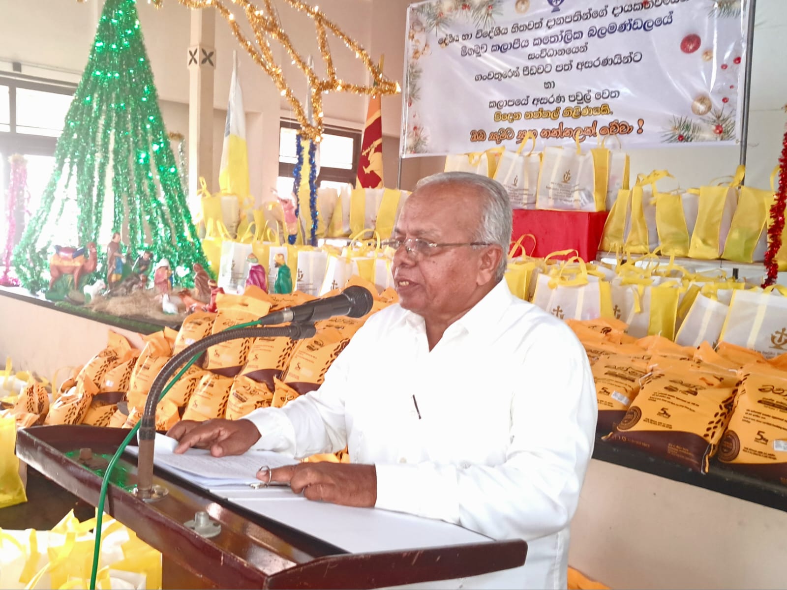මීගමුව කලාපීය කතෝලික බල මණ්ඩලයේ සභාපති එම්මානුවෙල් පියුම්වර්ධන මහතා මෙහිදී ප්‍රකාශ කළේ ජේසුතුමන්ගේ උපත සිහි කරන නත්තලේ අසිරිය පීඩාවට පත් වී සිටින අපේම ජනතාව සමඟ මෙලෙස බෙදා හදාගන්නට දේශීය සහ විදේශීය හිතවත් දානපති පිරිසකගේ මූල්‍ය දායකත්වයෙන් වියලි සළාක පාර්සල් ප්‍රදානය කිරීමේ මෙම වැඩසටහන මෙලෙස සංවිධානය කළ බවයි. ඒ අනුව ජාති , ආගම් භේද වැනි කිසිදු භේදයක් නොමැතිව ගංවතුරෙන් පීඩාවට පත් මීගමුව ප්‍රදේශයේ සහ මීගමුවට තදාසන්න ගංවතුරෙන් පීඩාවට පත් තෝරාගත් පිරිසකට මෙලෙස සහල් ඇතුළු වියලි සලක පාර්සල් බෙදා දෙන බවද ඔහු ප්‍රකාශ කළේය . ඒ අනුව ඔහු වැඩිදුරටත් පැවසුවේ රුපියල් 850,000ක් පමන වන වටිනාකමින් යුත් සහල් සහ වියළි සලාක මෙලෙස තම සංවිධානය වන මීගමුව කලාපීය කතෝලික බල මණ්ඩලය මගින් අද දින ප්‍රදානය කරන බවයි.