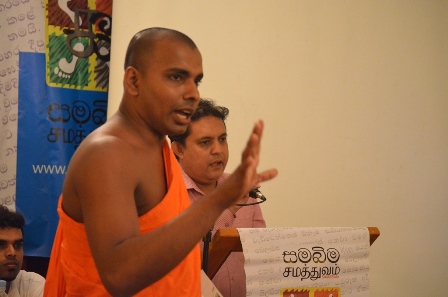 සම්මන්ත්රණය ආරම්භ කර සුළු මොහොතකින් සභාවේ අසුන්ගෙන සිටි චීවරධාරියෙක් දේශකයන්ට බාධා කරමින් සම්මන්ත්රණය නැවැත්විය යුතුබව කියා සිටි නමුත් එහිදී නීතිඥ සුදර්ශන ගුණවර්ධන ප්රකාශ කළේ ප්රජාතන්ත්රවාදී රටක පුරවැසියන් වශයෙන් තමන්ට අදහස් ප්රකාශ කිරීමට සහ සාමකාමීව රැස්වීමට අයිතිවාසිකමක් තිබෙන බැවින් තමන් සම්මන්ත්රණය නොනවත්වන බවය.