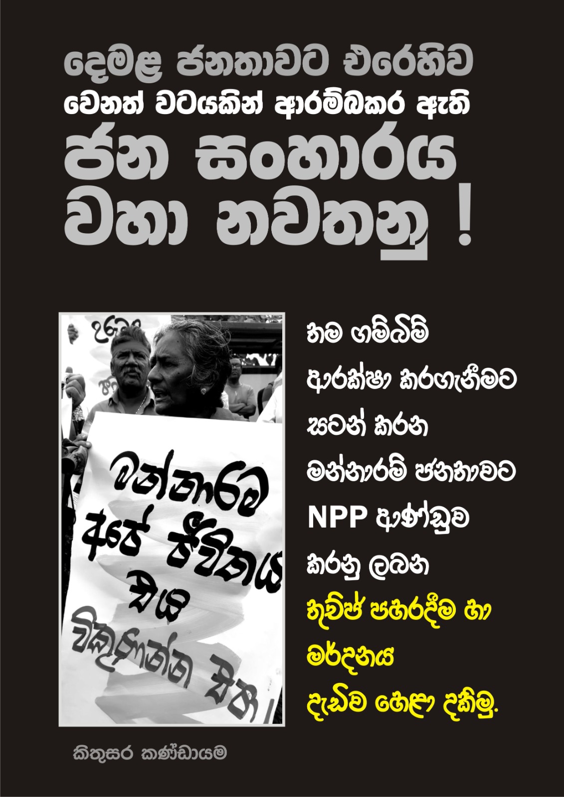 මන්නාරම් දූපත විනාශ කරමින්, ජනතාවගේ ඉඩම් බලහත්කාරයෙන් උදුරාගෙන සුළන් බලාගාර, ඛනිජ වැලි හෑරීමට සමාගම් වලට පවරමින්