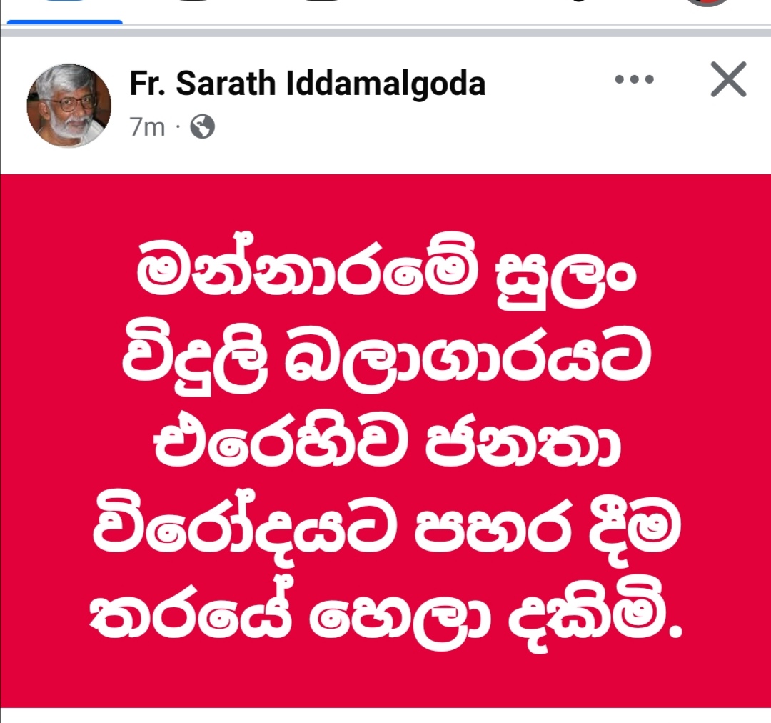 මන්නාරමේ මොකද වෙන්නේ යැයි ප්රශ්ණ කරමින් සමාජ ක්රියාකාරිකයෙකු වන සඳුන් තුඩුගල සිය ෆේස්බුක් පිටුවේ පහත සටහන පළකර තිබුණි.