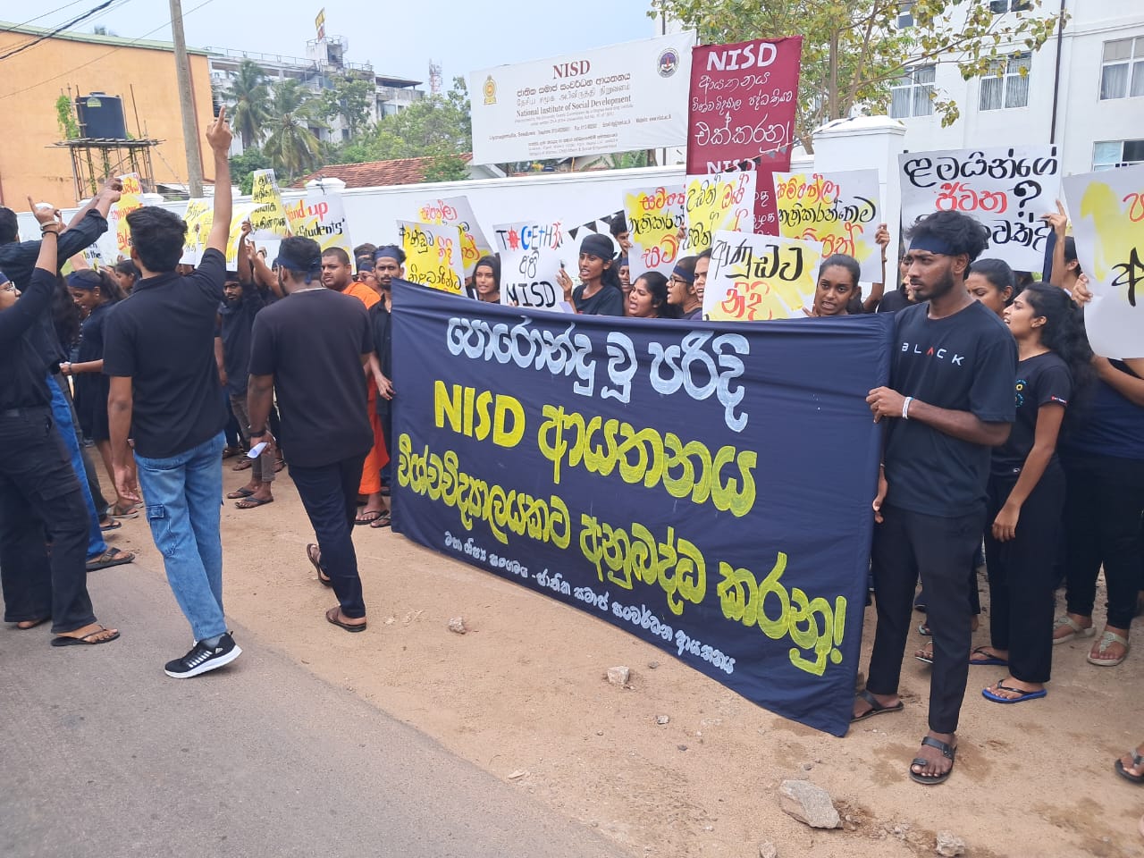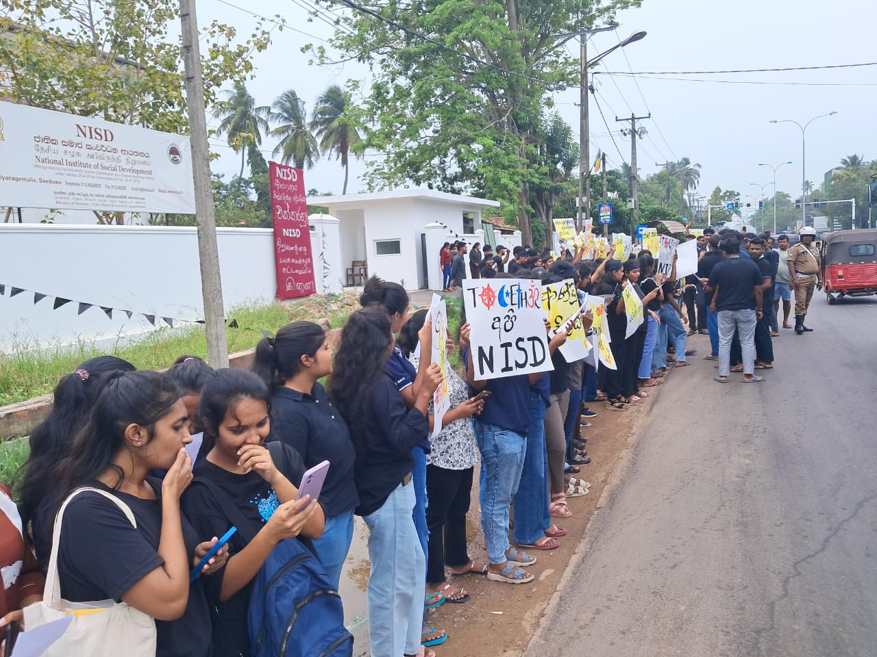 කටුනායක, ලියනගේමුල්ල ප්‍රදේශයේ පිහිටි ” ජාතික සමාජ සංවර්ධන ආයතනය” ( National Institute of Social Development – NISD ) මෙරට විශ්ව විද්‍යාලයකට අනුබද්ධ කරමින් එය මෙරට විශ්ව විද්‍යාල පද්ධතියට එක්කරන ලෙස ඉල්ලා අද දින (10/11/2025) දහවල් එම ආයතනය ඉදිරිපිටදී දැවැන්ත උද්ඝෝෂණයක් පවත්වන ලදී.