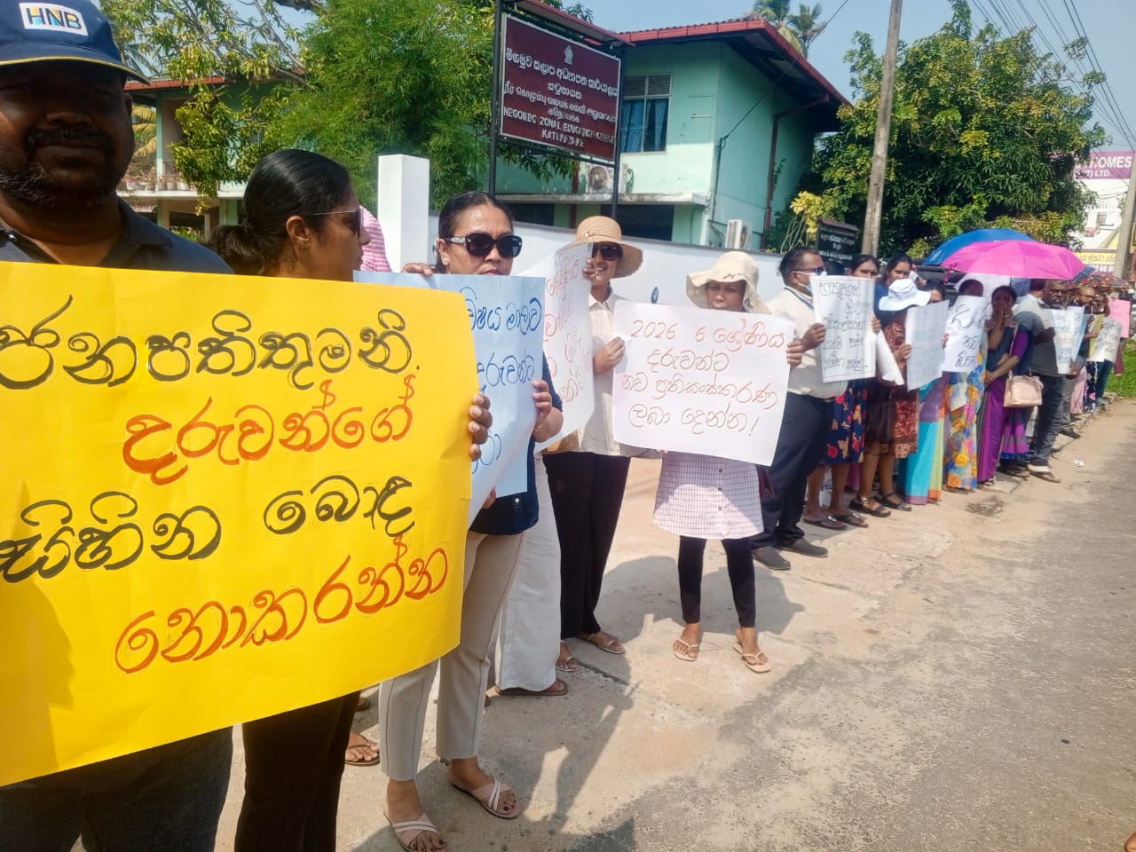 නව අධ්යාපන ප්රතිසංස්කරණ නැවත වහාම ක්රියාත්මක කරන ලෙසත් හයවන ශ්රේණියේ දරුවන්ගේ පෙළ පොත් වහාම එම දරුවන්ට ලබා දීම නව අධ්යාපන ක්රමය අනුව ඉගෙනීම් කරන ලෙසට බල කරමින් අද කටුනායක පිහිටි මිගමුව අධ්යාපන කාර්යාලය ඉදිරිපිටදි උද්ඝෝෂණයක් පැවැත්විණි.