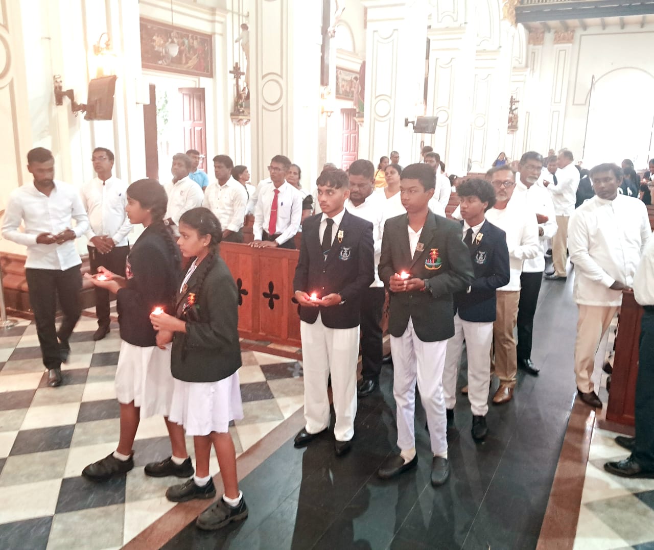 දිව්‍ය පූජාව අවසානයේ දී ඒ සඳහා සහභාගි වූ ගරු පියතුමන්ලා, නගරාධිපති උප නගරාධිපති ඇතුළු නාගරික මන්ත්‍රීවරු පිරිස මෙන්ම, ශාන්ත මරියා විද්‍යාලයේ සිසු දරු දැරියන් එක්ව මෙම අයහපත් කාලගුණික තත්ත්වය හේතුවෙන් මියගිය සියළු දෙනා වෙත මොක්සුව පතමින් සහ එම අයහපත් කාලගුණික තත්ත්වය නිසා අවතැන් වී සිටින සියලු දෙනා වෙත මෙන්ම සමස්ත රටවැසි සියලු දෙනා වෙත සාමය සහ ශාන්තිය ප්‍රාර්ථනා කරමින් දේව පාමුල, ඉටි පහන් දැල්වීමද සිදු කරන ලදී .