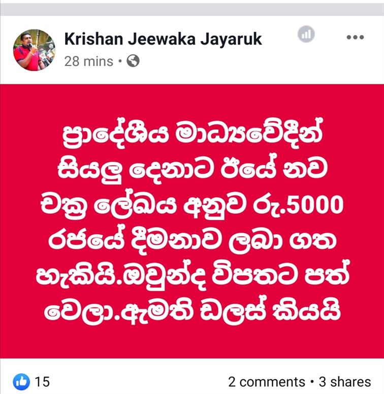 ප්‍රාදේශීය මාධ්‍යවේදින්ටත් රු 5000 රජයේ දීමනාව!