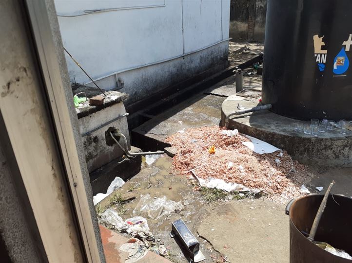 මෙහි පිටුපසට ගියවිට කුනුකසල මෙන්ම ජරා වතුර එක්රැස් වන ආවරණයක් නැති වලක් සහ එකී වතුර ගලාගෙන යන කානුවක් ඇත .මෙසේ අපිරිසිදු පරිසරයක් තිබියදී තාප්පවල පින්තූර ඇඳීමෙන් පමණක් මෙය වසා ගැනීමට නොහැක .