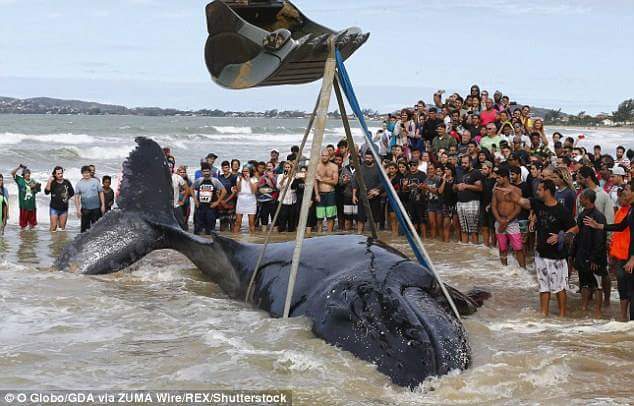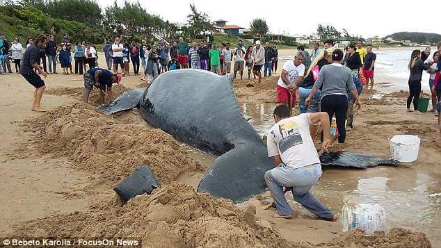 FB_IMG_1503711817605පසුගිය  අගෝස්තු 23 උදේ බ්‍රසීලයේ වෙරළට බබෙකු ගොඩ ගසා තිබුනේය .බබා අඩි 32 ක් දිග තල් මස් පැටවෙකි .ඔහුට පණ තිබුනේය. අවට මිනිසුන් ගැහැනුන් 300 දෙනෙකු එකතු වී එක දිගට පැය 24 කට ආසන්න කාලයක් පැටවාට වතුර ඉසිමින්ද , මුහුදෙ සිට තල්මසා හිරවී සිටි වැල්ලට ඇලක් කපමින්ද .පැටවා බේරා ගැනීමට උත්සාහ කළහ .කඹ ගැට ගසා බෝට්ටු දෙකකින් මුහුදට ඇදීමටද උත්සාහ කළහ ..එහෙත් වෑයම සාර්ථක වුයේ නැත .අවසානයේදී JCB යන්ත්‍රයකින් පැටවා ඔසොවා ගෙන ගොස් මුහුදට දමනු ලැබීය .FB_IMG_1503711822442FB_IMG_1503711826500