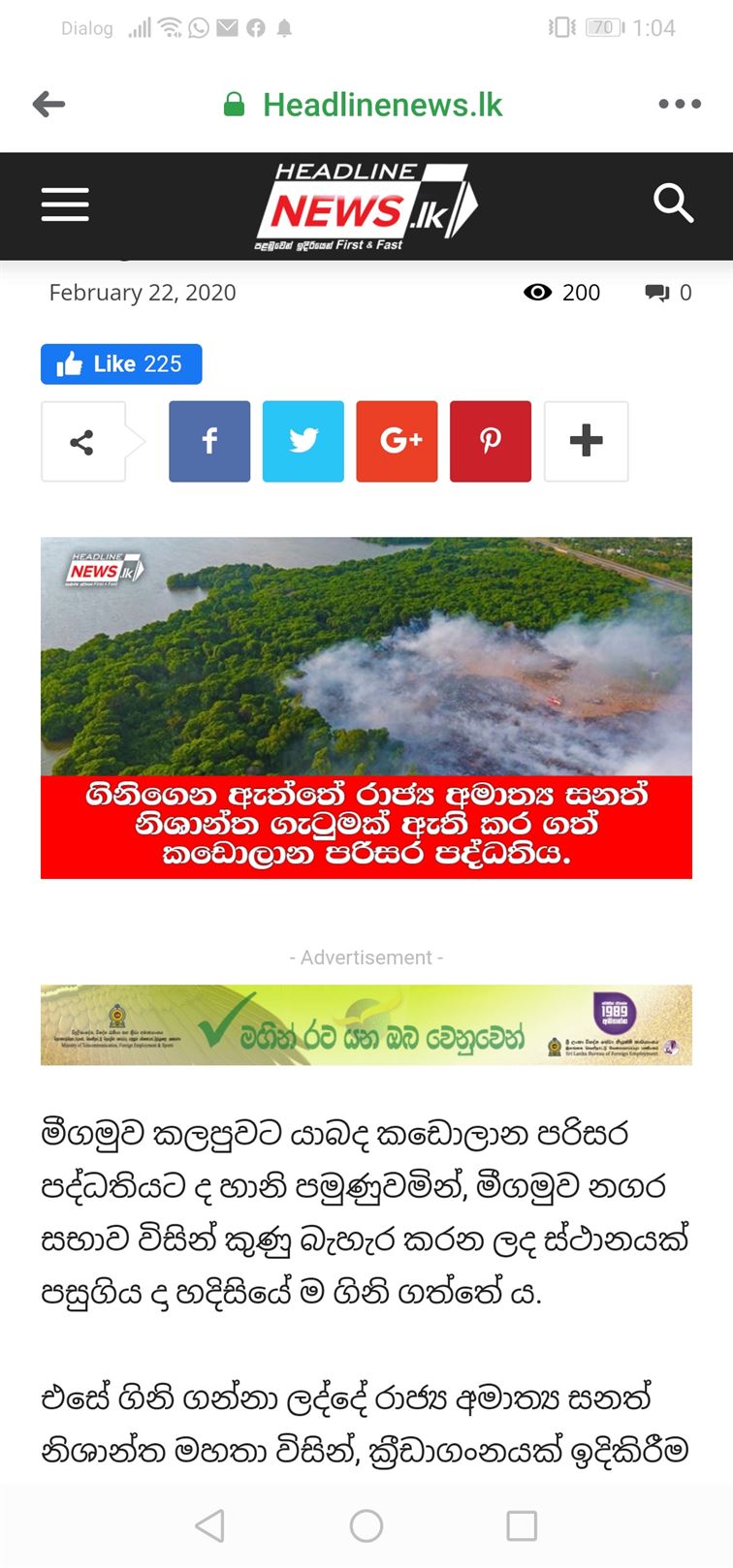 පසුගියදා සීදුව නගර සභාව විසින් පවත්වාගෙන ගිය කසල බැහැරකරන ස්ථානයේ ගින්න බුකියේ බහුතරයක් දෙනා විසින් මිගමුවේ කඩොලාන පරිසරය ගිනිතබා ඇතැයි යනුවෙන් සම්පුර්ණ අසත්යය පුවතක් සමාජ ගතකරමින් සිටි.අද අපගේ ඇස ගැටුන වෙබ් පුවතක් ද සම්පුර්ණ අසත්යය තොරතුරක් ලියා තිබේ.ඒ සටහනට අනුව ”ගින්න ඇතිවි තිබෙන්නේ මීගමුවේ කඩොලාන පරිසරයටය. ” එය ඇමති සනත් නිශාන්ත විසින් කියන්නට යෙදුන තැනයි. එපමණක් නොව මෙසේ කුණු බැහැර කර ඇත්තේ මීගමුව නගර සභාව විසිනි.