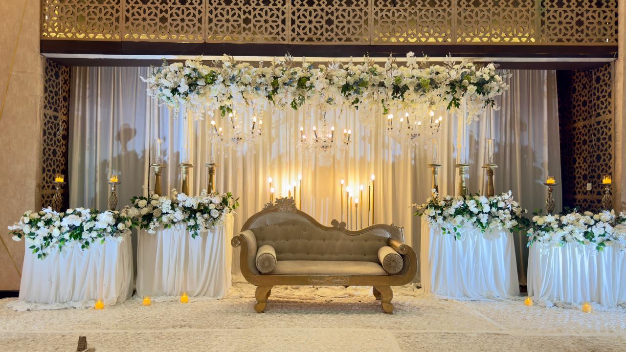 3 අලංකාර වූ මල් සැරසිලි හෙවත් ෆලවර් ඩෙකරේෂන් සහ සුඛෝපභෝගී හා අත්යාලංකාර උත්සව ශාලාව ඇතුළු සියලුම අංග සම්පූර්ණ සේවාවන්. සමගින්
