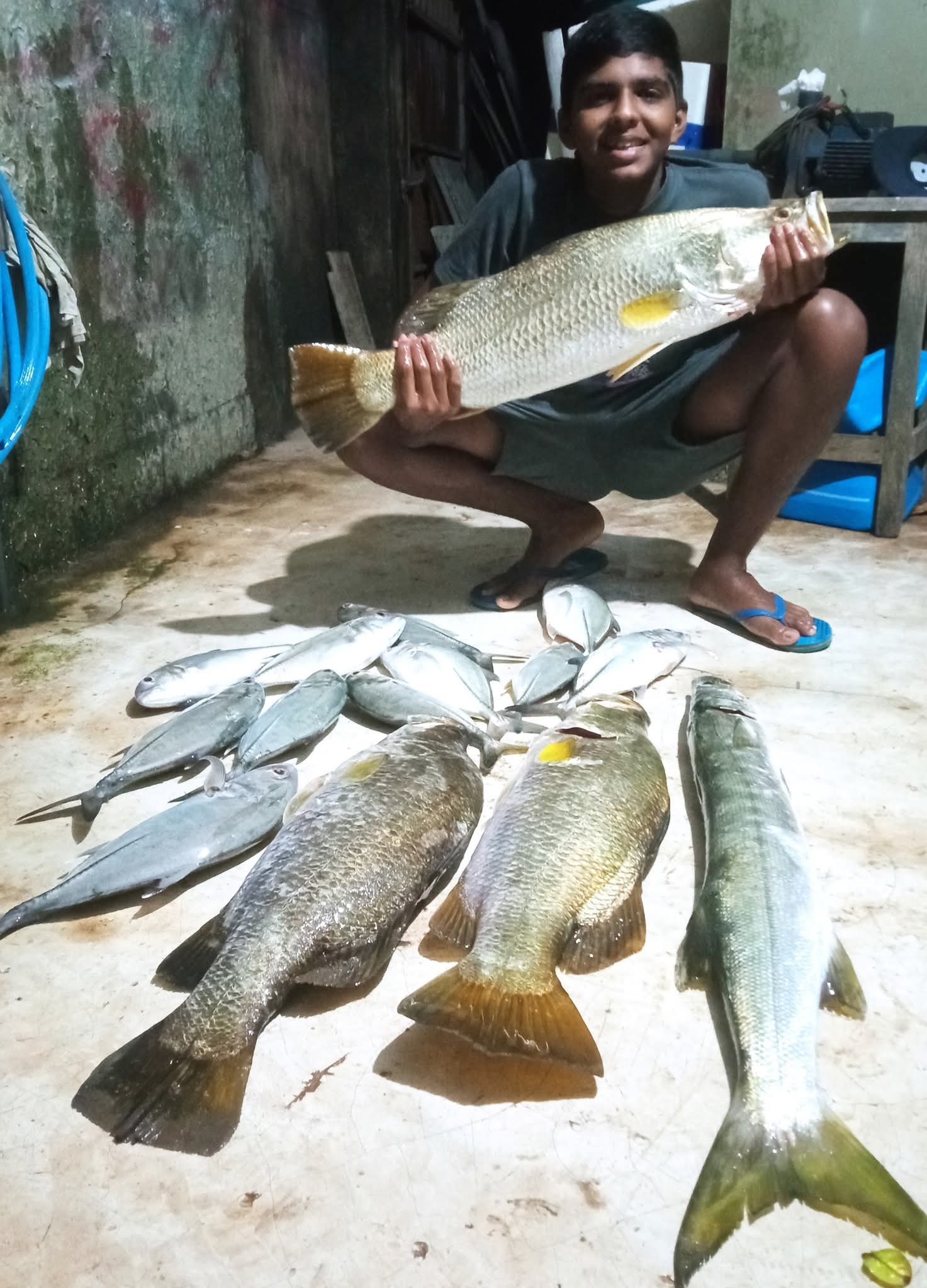 මේ මගේ පුත්ර රත්නය මා එක්ක මොරවලේ අල්ලපු මාළු සෙට් එක. එන විධියට මගේ records කඩයි වගේ 😄