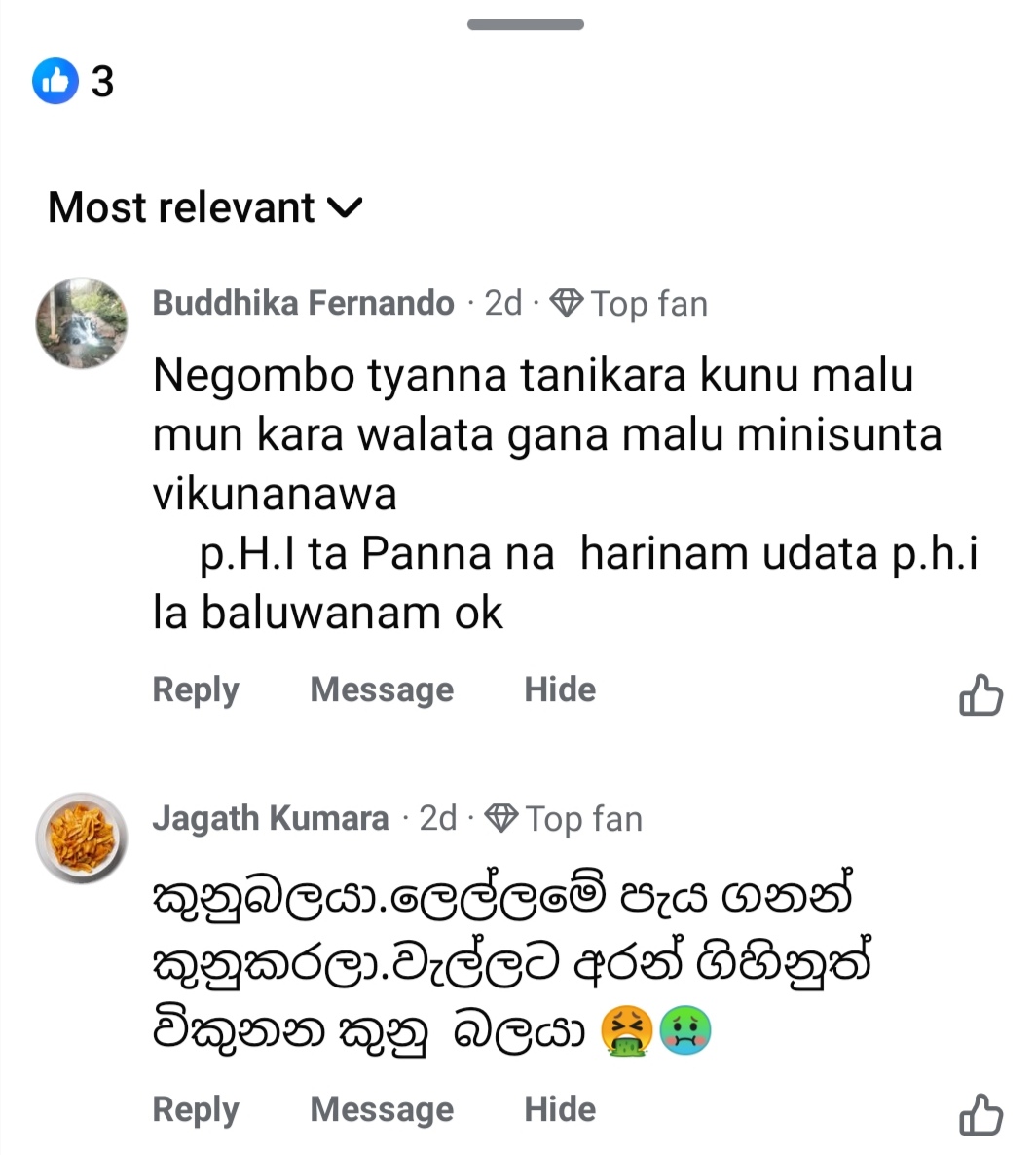 පහුගිය දවස් කිපයකම අපි මාලු ගැන දාපු නිව්ස් වලට , ෆේස්බුක් ව්‍යාජව පවත්වාගෙන යනවා යැයි හිතන්න පුලුවන් දෙතුන් දෙනෙක් මංකුලියේ ලෙල්ලම් වල මාළුත් කුණු මාලු කියල කෙමෙන්ට්ස් දාන්න පටන් අරන් තිබුන.