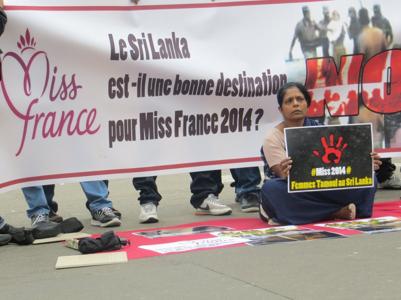 ප්රංශ ආණ්ඩුව ගෙන ඇති තීරණයට එරෙහිව විරෝධතා උද්ගෝෂණයක් පැරිසියේ ප්රංශ පුවත් සේවාව ඉදිරිපිට ඊයේ (6) පැවැත්විණි .මෙය සංවිධානය කර තිබුනේ දෙමල අන්තර වාර ආණ්ඩුවේ සාමාජිකයන් නියෝජිතයන් විසිනි . තමිල් ඊලාම් රුපවාහිනියේ මාධ්යවේදිනියක වන ඉසප්රියා නොහොත් ශෝභා ආරක්ෂක හමුදා අත්අඩංගුවට පත් වන ආකාරයත් ඉන් පසු ඇයව ඝාතනය කර ඇති අයුරු බ්රිතාන්ය චැනල් 4 රුපවාහිනිය මගින් පසුගිය දා විකාශනයකෙරිණි . එවන් තත්වයක් හමුවේ ” මිස් ෆ්රාන්ස් ” වැනි වැඩසටහනක් පැවැත්වීමට ශ්රීලංකාව සුදුසු ස්ථානයක් නොවනබව ඔව්හු අවධාරණය කළහ .මේ පිළිබඳව ප්රංශ ජනමාධ්ය දැඩි අවධානයක් යොමු කරන මෙන් ඉල්ලා ලිපියක් ද ප්රංශ පුවත් සේවා ප්රධානින් වෙත යොමු කෙරිණි . ( සේයා ; අතුල විතානගේ )