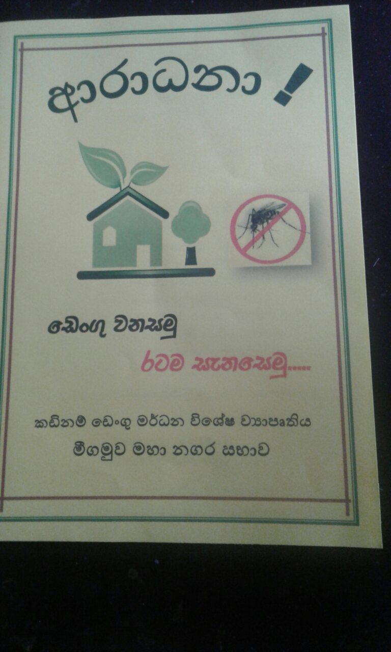 මීගමුවේ ඩෙංගු වසංගත තත්වය මැඩිම සදහා ක්රියාත්මක වු මෙගා ඩෙංගු වැඩසටහන නිමාවිමට නියමිත බව වාර්ථා වේ.