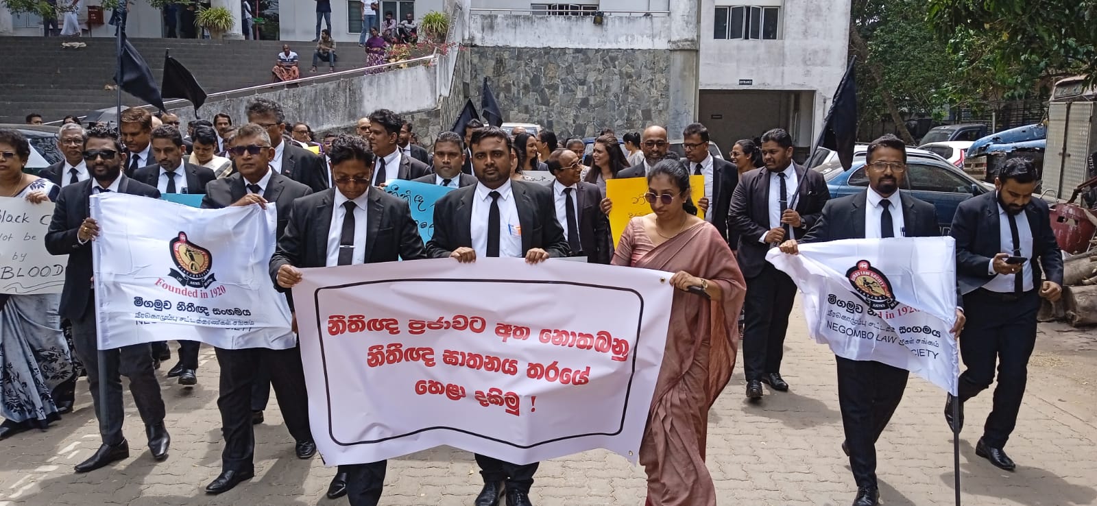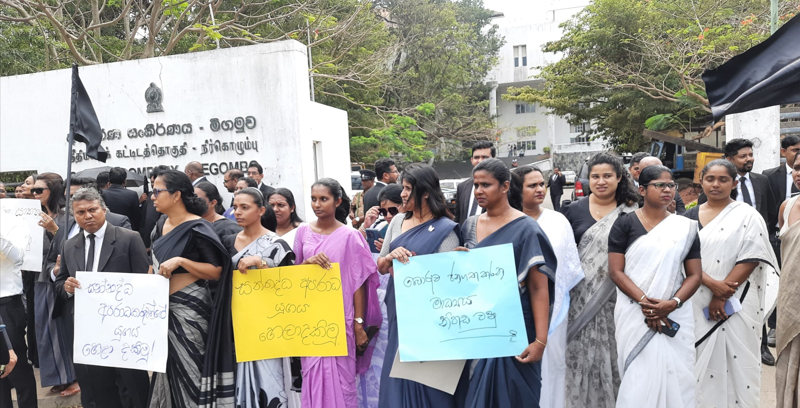 වර්තමානයේ රටේ පවතින ඝාතන සංස්කෘතිය අවසන් කිරීමටත් මහජන ආරක්ෂාව තහවුරු කිරීමටත් රජයට බලකරමින්, .ඊයේ දින (15/02/2016) ශ්රී ලංකා නීතිඥ සංගමය ගත් තීරණයක් අනුව මීගමුව අධිකරණ සංකිර්ණය තුළ නඩු කටයුතු වල නිරත වන සියළු නීතිඥවරු සියලු අධිකරණ කටයුතු වලින් ඉවත් වී අධිකරණ සංකීර්ණයේ පියගැටපෙළ ඉදිරිපිටදී සිය විරෝධය පල කිරීමට එක් වුහ. එලෙස මීගමුව අධිකරණ සංකීර්ණයේ පියගැටපෙළ ඉදිරිපිට විරෝධතාවය නිරත වූ නීතිඥවරුන් පසුව පාගමනින් මීගමුව අධිකරණ සංකීර්ණය ඉදිරිපිට මහා මාර්ගය ඉදිරිපිටට පැමිණ සිය දැඩි විරෝධය සහ අප්රසාදය වර්තමාන රජයට එල්ල කළහ. ඒ අනුව අධිකරණ භුමිය තුලත්, අධිකරණ සංකීර්ණය ඉදිරිපිට මහා මාර්ගයේදීත්, දැන්වීම් හා පුවරු ප්රදර්ශනය කරමින් අද දින (16/02/2026) පෙරවරු 11.00 ට පමණ මෙලෙස විරෝධතාව ආරම්භ කළ අතර මෙම විරෝධතාවය සඳහා මීගමුව අධිකරණ සංකීර්ණයේ නීතිඥ සේවා සපයන නීතිඥවරුන් 150 දෙනෙකු පමණ සහභාගි වූ බව ලංකා නීතිඥ සංගමයේ මීගමුව ශාඛාවේ ගරු ලේකම් ජ්යේෂ්ඨ නීතිඥ ඉන්දික සිල්වා මහතා සඳහන් කළේය.