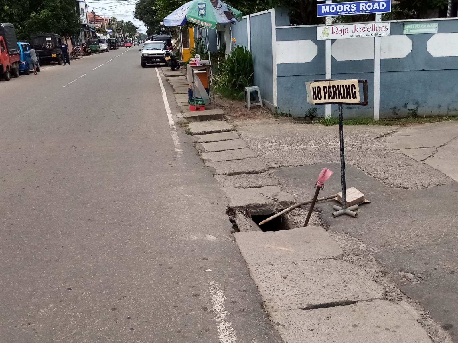 මෙහි දමා ඇති කොන්ක්‍රීට් ලෑල්ලක් කැඩී යාම නිසා මෙකී වල නිර්මාණය වී ඇත. මේ නිසා කිහිප දෙනෙකු තුවාල සිදුකරගත් බව අසල කඩ හිමියෙකු අප සමඟ පැවසීය . මෙම පල්ලියට නිතර විශාල පිරිසක් පැමිණෙන බැවින් එය වඩාත් බරපතල තත්වයක් බව කිව යුතුය. එසේම මෙම ස්ථානය හතරමං හන්දියකි.