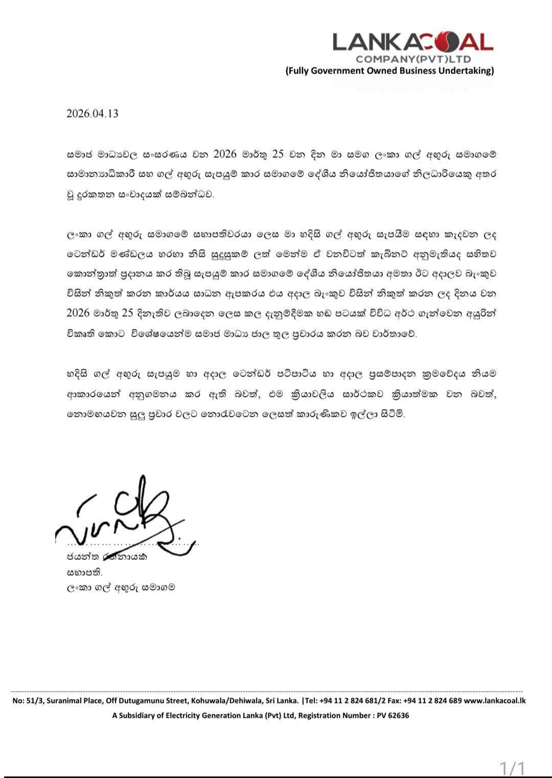 ලංකා ගල් අඟුරු සමාගමේ සභාපතිවරයා මේ ලිපිය නිකුත් කරන්නේ අපරාධ පරීක්ෂණ දෙපාර්තමේන්තුව විසින් සීල් තබා ඇති ආයතනයක ලිපිශීර්ෂය සහ නිළමුද්‍රාව භාවිතා කිරීම විශාල වරදක් බව නොදන්නා නිසා විය නොහැක. රජයේ ප්‍රවෘත්ති දෙපාර්තමේන්තුව එය ප්‍රචාරය කිරීම තුළ පෙනී යන්නේ ධනපති චෞර වළල්ලට රාජ්‍ය ව්‍යුහයන් හැසිරවීමට ඇති ශක්‍තිය නොවේනම් වෙන කුමක්ද?
