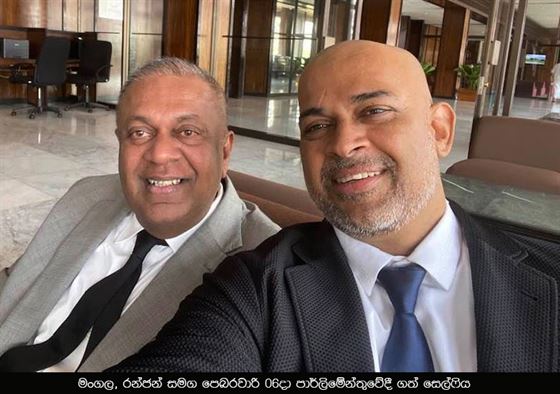 Mangala_Ranjan_Selfyරිමාන්ඩ් බාරයේ පසුවන පාර්ලිමේන්තු මන්ත්‍රී රන්ජන් රාමනායක මහතාගේ සුවදුක් බැලීමට එජාප නායක, හිටපු අගමැති රනිල් වික්‍රමසිංහ, ඉරාන් වික්‍රමරත්න, රුවන් විජයවර්ධන හා අර්ජුන රණතුංග යන පාර්ලිමේන්තු මන්ත්‍රීවරුන් කණ්‍ඩායම ඊයේ (13) දහවල් නව මැගසින් බන්ධනාගාරයට ගිය බව බන්ධනාගාර ආරංචි මාර්ගවලින් පැවසේ.