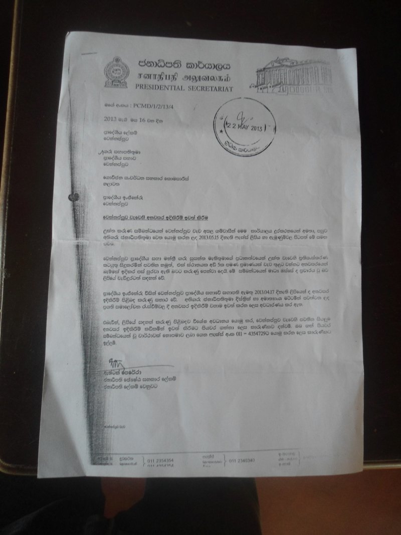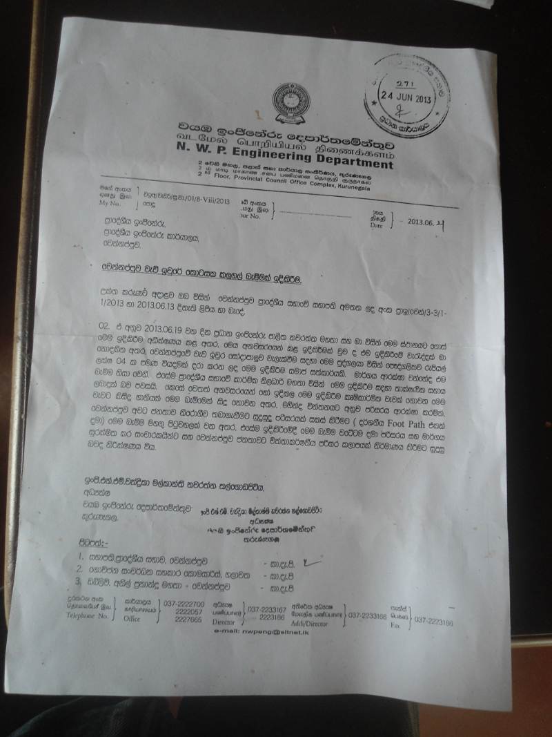 මේම කඩා ඉවත් කිරිම සදහා අවසන් නියෝගය ලැබෙන්නේ ජනාධිපති ලේකම් කාර්යාලයෙනි.මේ ඉදිකිරිම අනවසර වුවත් එය මහින්ද චින්තයට එකඟ යැයි කියන්නේ වැවේ පාලනය පිළිබදව කිසිදු අයිතියක් නැති වයඹ ඉජිනේරු අධ්යක්ෂකවරියයි. අැගේ පරිපාලන පරිචය හැදි මිටේ තරමට කුඩා වි තිබෙන අයුරු ඊයේ රටට පෙන්වා සිටියේ සිරස රූපවාහිනි පුවත් වලනි.