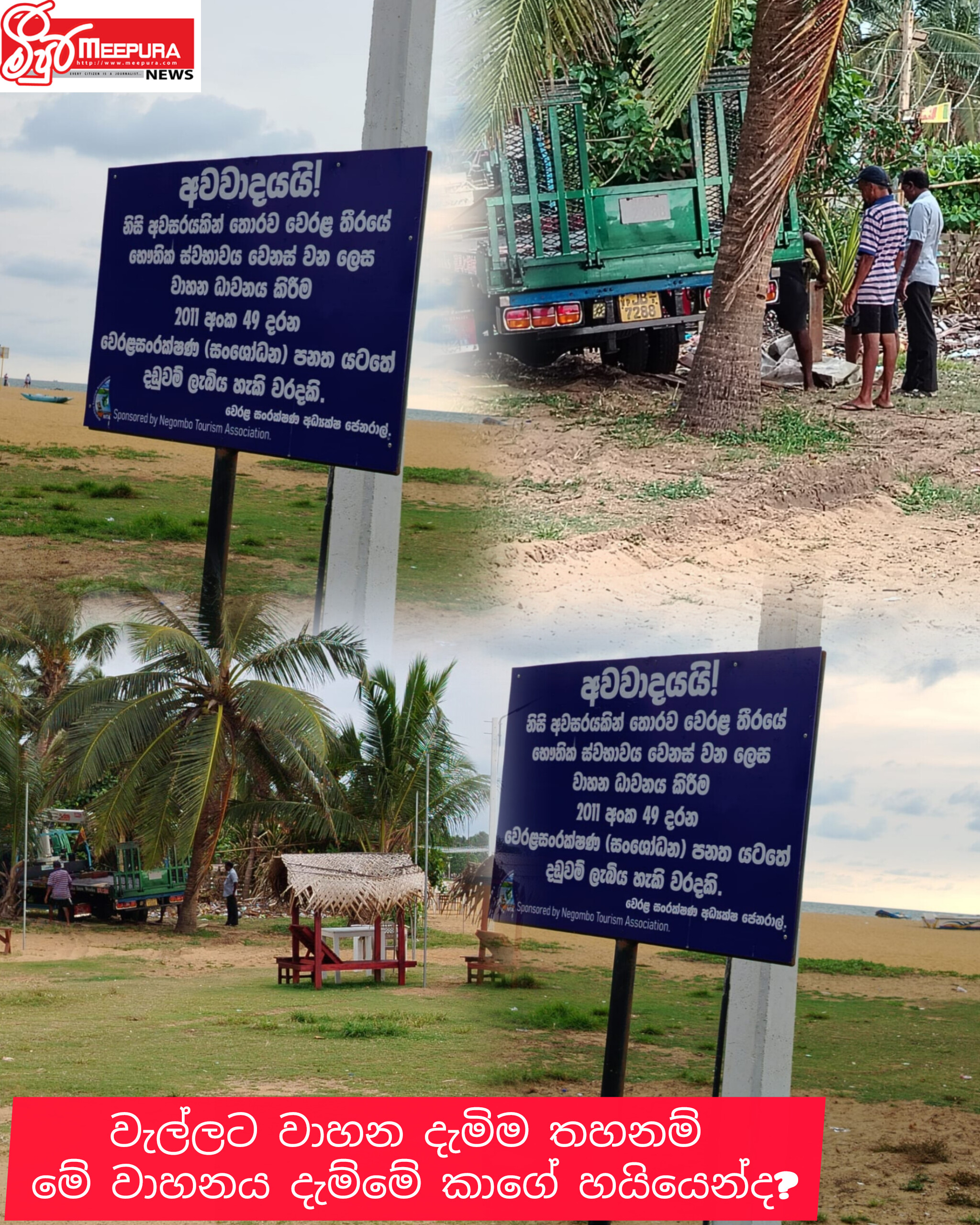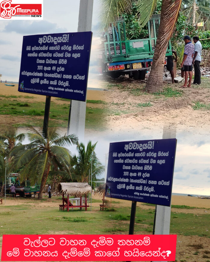 වැල්ලට වාහන දැමිම තහනම් යැයි පුවරු පවා සවිකර තිබියදි මිගමුව කුඩාපාඩුවේ සංචාරක කලාපයේ ටෙස්ටි බානානා නම් වු රෙස්ටුවරන්ට් එක පිටිපස වැල්ලට මේ වාහනය ඇතුල කර තිබුනේ ධිවරයන් විසින් ගේට්ටු සහ ඉබ්බන් දමා වසා තිබුන මාර්ගයේ ඉබ්බාද කඩා දමමිනි.