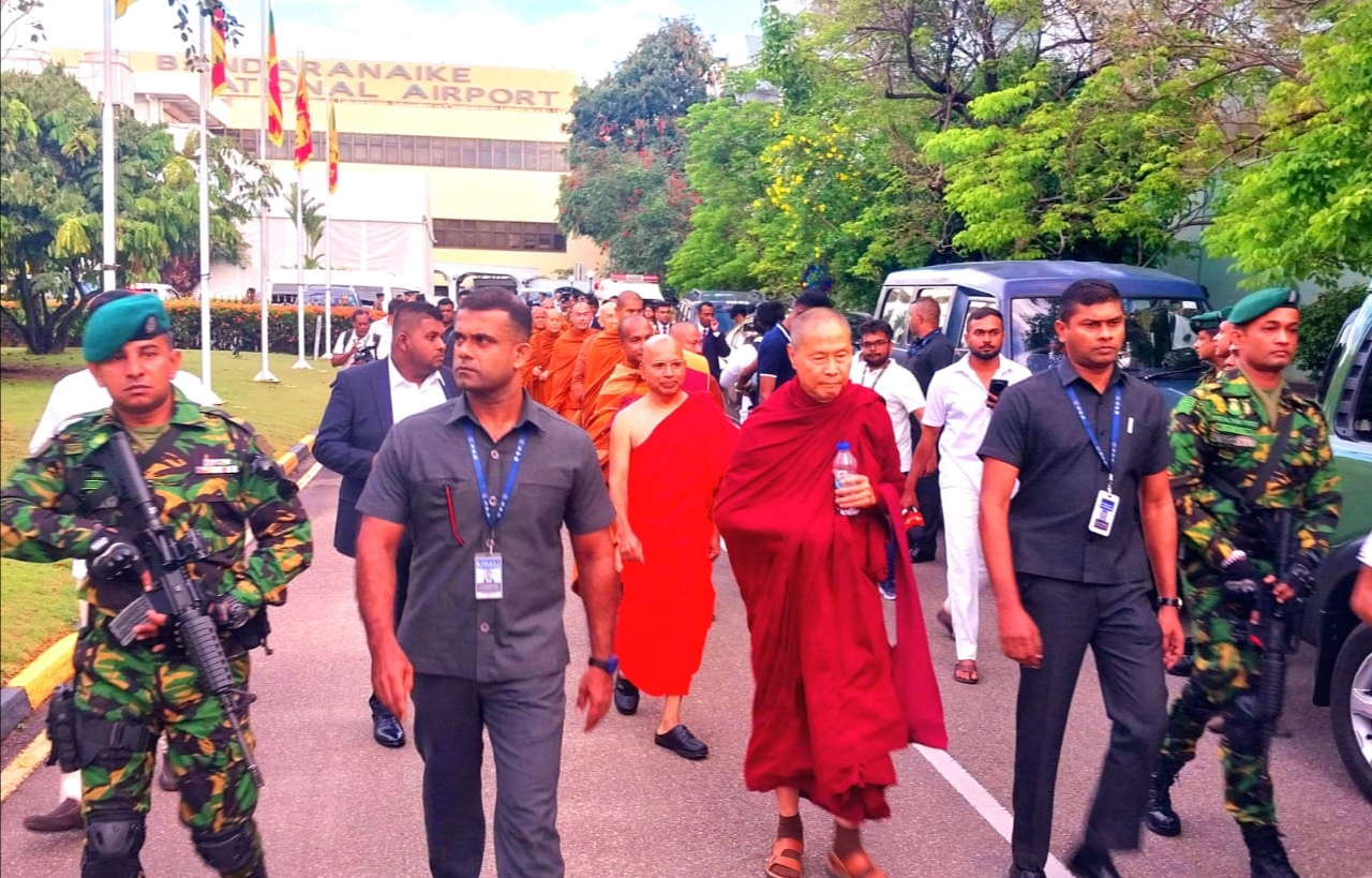 මේ පිරිස පිළිගැනීම සඳහා ආගමික සහ සංස්කෘතික කටයුතු පිළිබඳ අමාත්ය ආචාර්ය හිනිදුම සුනිල් සෙනෙවි මහතා, ජනාධිපති ලේකම් ආචාර්ය සනත් නන්දික කුමාර මහතා ඇතුළු තවත් රාජ්ය නිලධාරින් පිරිසක් කටුනායක ගුවන්තොටුපළේ