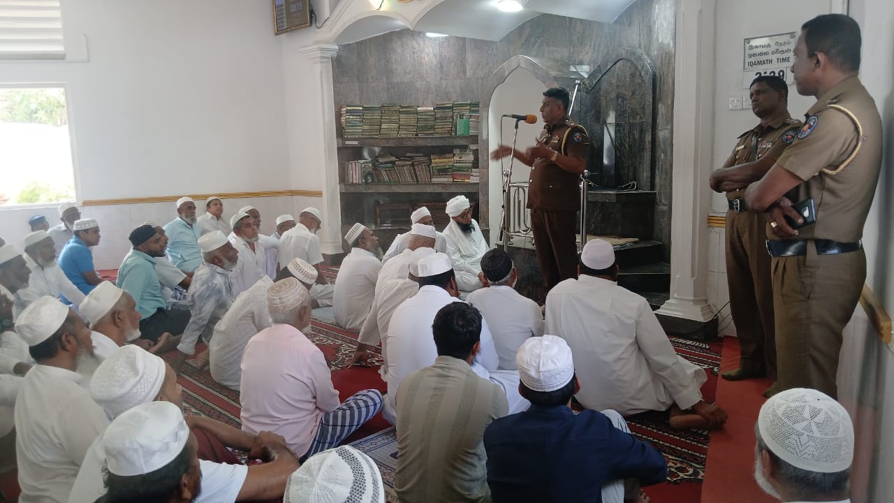 අද 2025.10.03 දින සිකුරාදා. ජුම්මා සලාත‍් වලින් පසුව මීගමුව පොලිසියේ නව රථවාහන ස්ථානාධිපති R. A. P. K කුලරත්න ප්‍රජා පොලිස් ස්ථානාධිපති C.I. රෝහණ සහ සජන් ක්‍රිශාන්ත යන මහත්වරුන්ගෙ මූලිකත්වයයෙන් දැනුවත් කිරිමේ දේශනයක් පෙරියාමුල්ල මුස්ලිම් මහ පල්ලියේ දි පැවැත්විණි. රථවාහන සැලැස්මක් මෙහිදී ඉදිරිපත් කළ අතර නීතියට අවනත විය යුතු බව සිහිපත් කරන ලදී. මත්ද්‍රව්‍ය ජාවාරම ගැන ද සිහිපත් කර සාර්ථක දැනුවත් කිරීමක් කලහ.