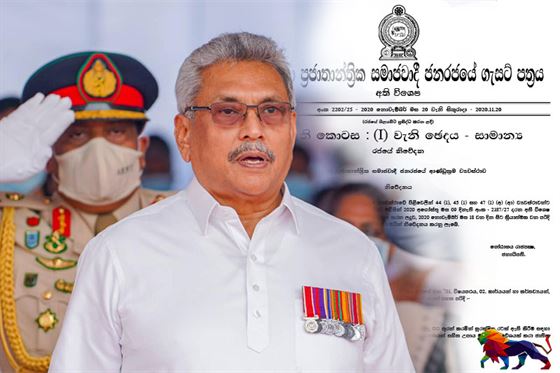 විසිවන ව්යවස්ථා සංශෝධනයෙන් ලැබුන බලතල යටතේ එම ගැසට් නිවේදනය නිකුත්කර ඇත්තේ නොවැම්බර් මස 20 වන සිකුරාදා දිනයෙන් යුතුවය.