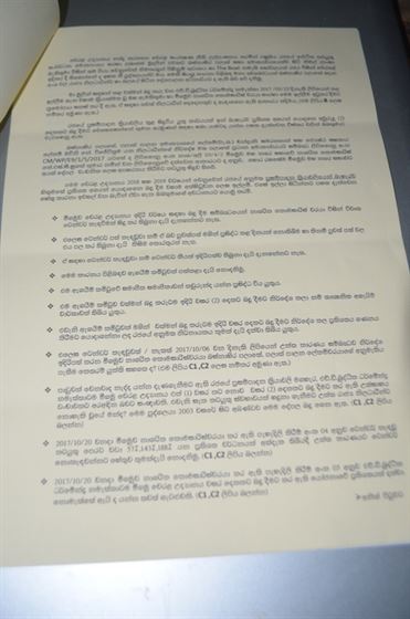 බස්නාහිර පලාතේ, පලාත් පාලන අමාත්යාශයේ ලේකම්(වැ.බ.) චන්ද්රානි සමරකොන් සහ ජ්යෙෂ්ඨ සහකාර ලේකම් ඔවිනි කේ. විඡේවික්රම යන නිලධාරීන්ගේ නිර්දේෂ මත පලාතේ ප්රධාන අමාත්යවරයට සම්බනධ ලිපිගොනු අංක කඵරැඋඡරැෑ9රැ1රැ5රැ2017 යටතේ ද ලිපිගොනු අංක නාග/අලි 03/4/2 මීගමුව මහ නගර සභාවේ නාගරික කොමසාරිස් කේ.එස්.සී.සුගත් කුමාර නමින් වන ලිපිගොනුවේ දක්වෙන ආකාරයට ද අනුව, හොර රහසේම මීගමුව මහ නගර සභාවට අයත් දේපල වංචනික ලෙස අපහරනය කිරීමට කටයුතු සිදුව තිබේ.
