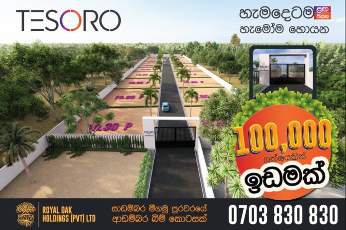 ” ටෙසරෝ (( TESORO )) ඉඩම් ව්‍යාපෘතියේ අගනා බිම් කොටස් 20 න් , ඔබ කැමති ඉඩම් කොටස දැන්ම වෙන් කරගන්න.