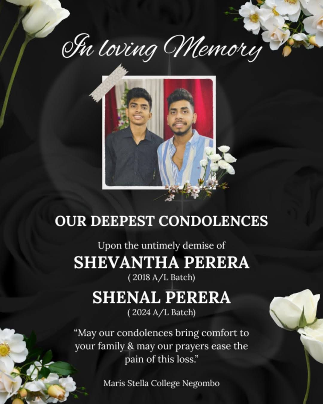 එලෙසම මියගිය 21 හැවිරිදි ඇන්ටන් ෂෙනාල් පෙරේරා ද අපොස උසස් පෙළ විභාගයට පෙනී සිට නොබෝදා ප්‍රතිඵල පිටවූ අතර එහිදී ඔහු ” ඒ ” සාමාර්ථ දෙකක් සහ ” බී ” සාමාර්ථයක් ද