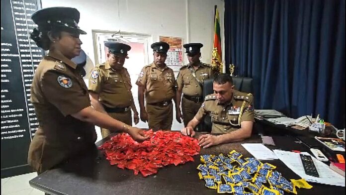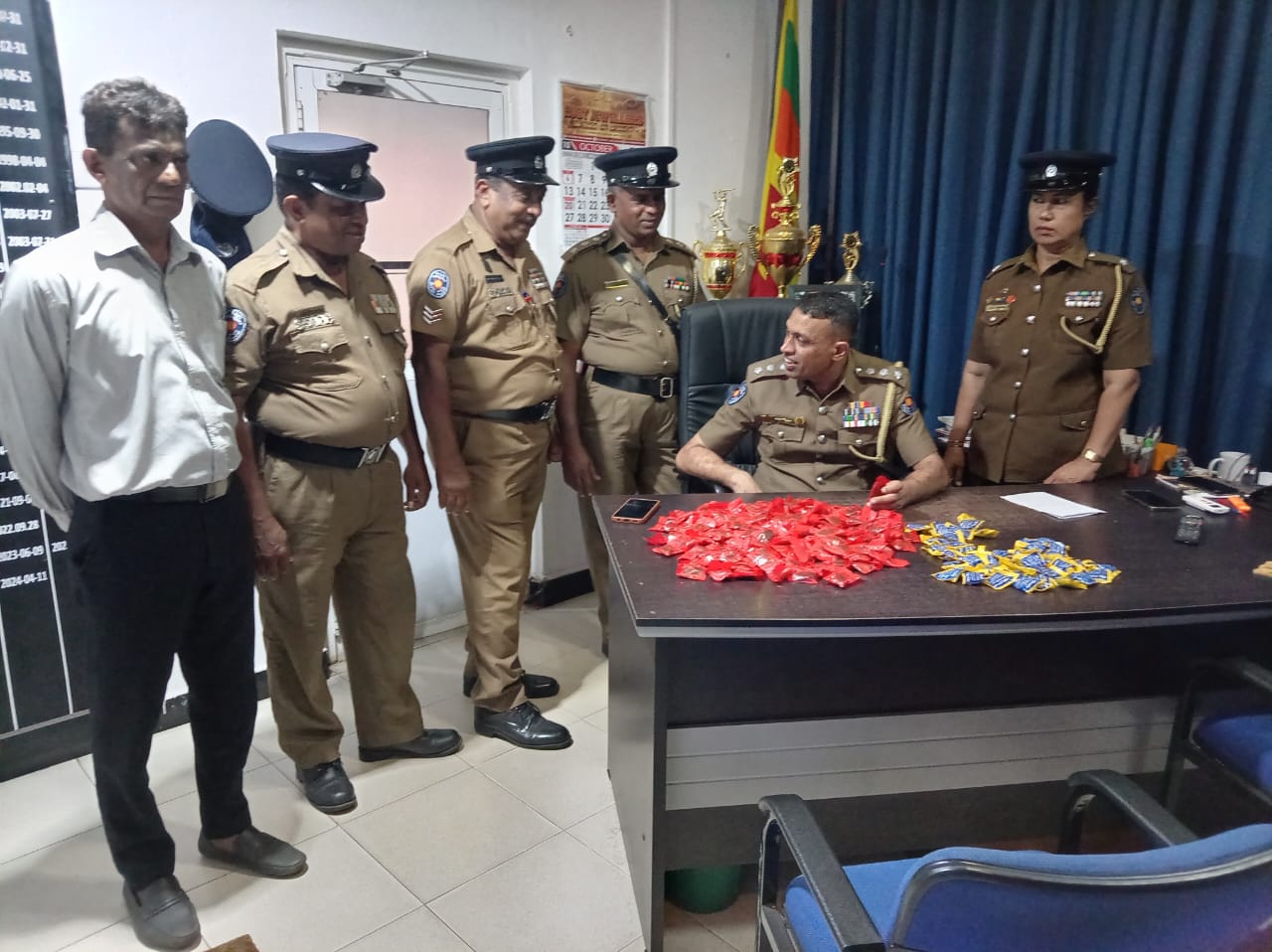 ප්‍රජා පොලිස් ඒකගේ ස්ථානාධිපති ප්‍රධාන පොලිස් පරීක්ෂක එම්.රෝහණ,31298 වීරසිංහ ,35086 එදිරිසිංහ, කා.පොකො.7026 මනිෂා,යන නිලධාරි නිලධාරිනියන් විසින් උපාය දූතයෙකු යොදවා මත්පෙති (මදන මෝදක)241ක් සමග එක් සැකකරුවකු අත්අඩංගුවට ගෙන තිබුණි.මෙම මත් පෙතිවලින් කොටසක් කැසියර් මේසේ ලාච්චුවේ ද තවත් කොටසක් පාසල් බෑගයකද බහ තිබුණු බව පොලිසිය කියයි.ඇතැම් සිසුන් මෙම පෙතිවර්ග මිලදී ගැනීමම සඳහා පාසල් කාලයෙන් පසු විවිධ සේවාවන්වල යෙදී මුදල් උපයන බවට තොරතුරු ලැබුණු බවද පොලිසිය සඳහන් කළේය, දූෂන මර්දනඅංශයේ නඩු කටයුතු මෙහෙයවන පො.සැ.33626 රාජකරුණා නිලධාරියා විසින් සැකකරු අධිකරණයට ඉදිරිපත් කර කරුණු වාර්තා කළේය.