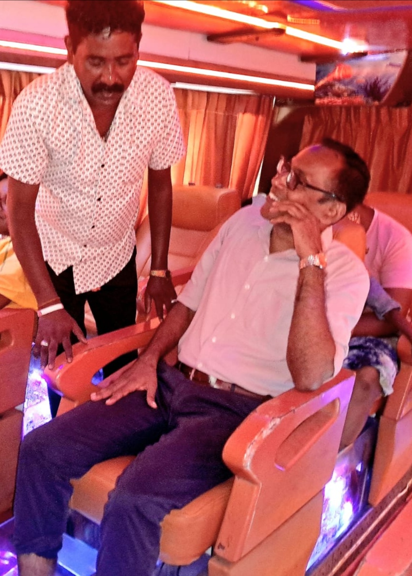 මේ තෙරපි එක එහෙම නැතිනම් මේ චිකිත්සාව ඇත්තෙන්ම ශරීරයට සහ මනසට ලැබෙන ඉතාම හොඳ සම්බාහනයක් වගේම හොඳ ප්රතිකාරයක් කියලා අපිට එතනදි දැනගන්න ලැබුණා. මේ “ෆිෂ් තෙරපි” එකකින් අපි කලින් කිව්ව වගේම සියුම් සම්බාහනයක් එහෙම නැත්නම් හොඳ මයික්රෝ මසාජ් එකක් කකුල් වල යටි පතුල් වලට ලැබෙනවා. විශේෂයෙන්ම කකුල් වල යටි පතුල් වලට ඒ මසාජ් එක ලැබුණාහම ඒක ඊළඟට මුළු ශරීරයටම දැනෙන චිකිත්සාවක් බවට පත් වෙනවා කියලත් අපිට එහිදී දැනගන්න ලැබුණා. මේ බස් රථය ඇතුලේ සුඛෝපභෝගී ලෙස අසුන් ගැනීමට ආසන කිහිපයක්ම තිබුණු අතර ඒ ආසන වල පල්ලෙහා ” මලාවි ” (MALAWi) මසුන් සහිත ටැංකි කිහිපයක්ම තිබුණා